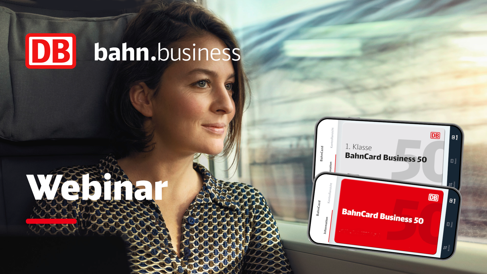 Erfahren Sie, warum Sie bis 31. Juli 2026 unbedingt die BahnCard Business 50 erwerben sollten. Was macht sie überhaupt so besonders für Ihr Unternehmen und Ihre Reisenden? Und wie schnell amortisiert sie sich? Woran ist zu denken, um sie einfach und schnell buchen zu können? Die Antworten erhalten Sie in unserem nächsten kostenfreien Webinar.