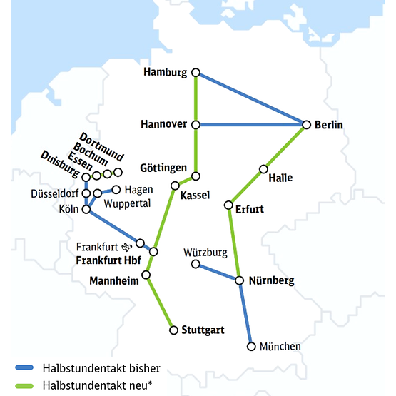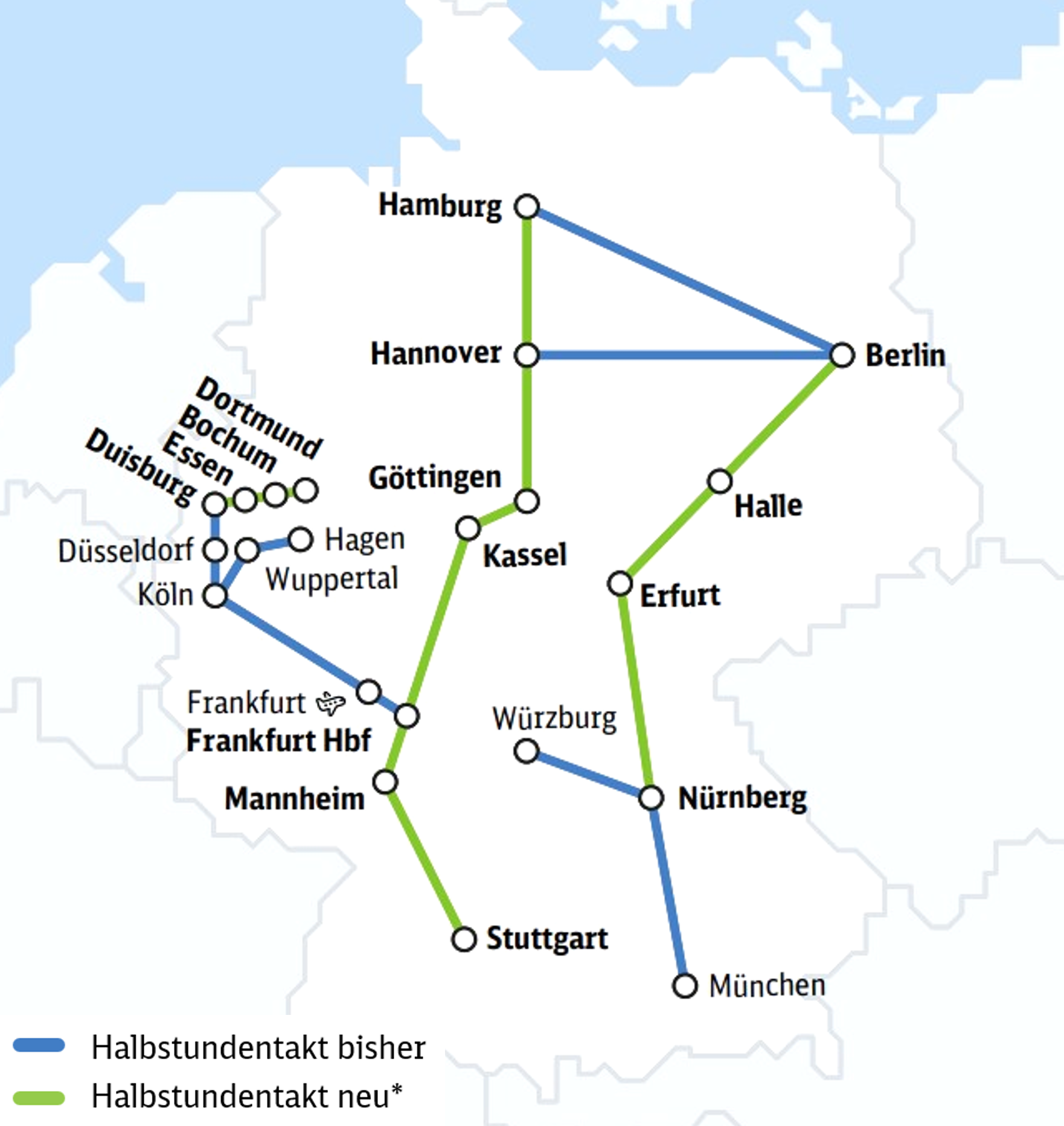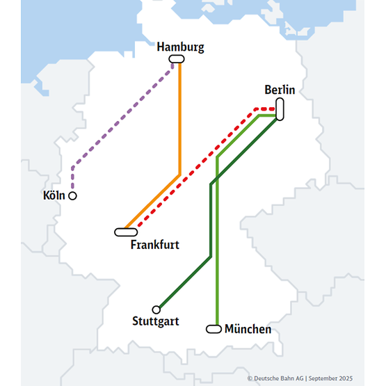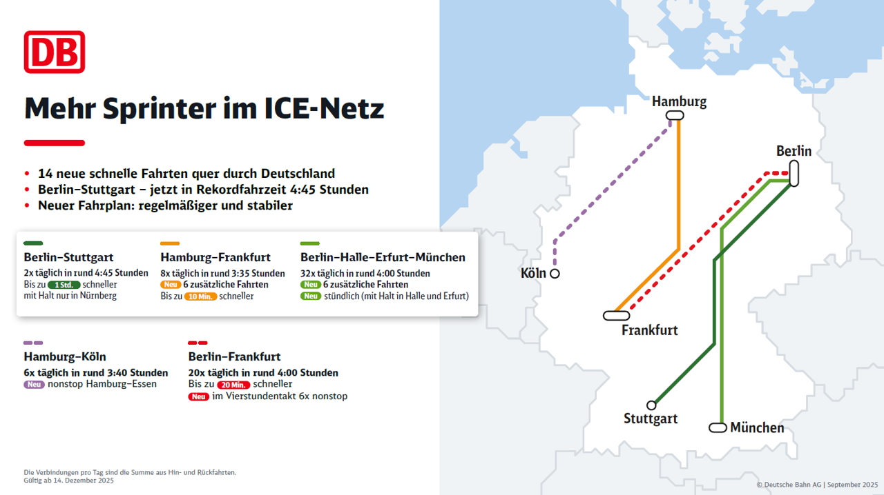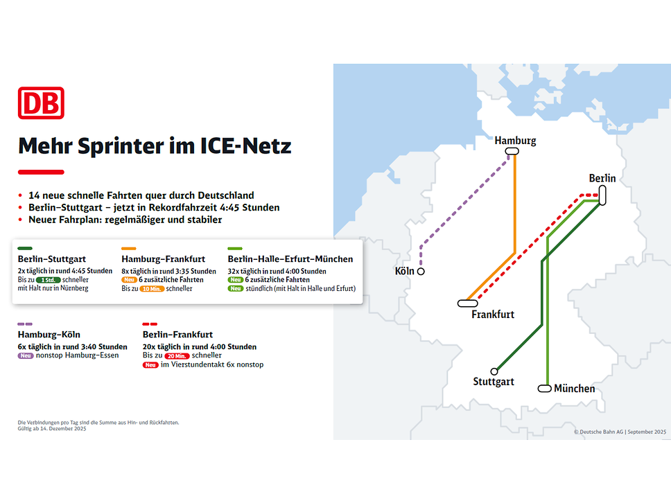 Reisen Sie jetzt schneller als je zuvor durch Deutschland! Mit dem neuen Fahrplan führt die Deutsche Bahn 14 neue schnelle Fahrten quer durch Deutschland ein.