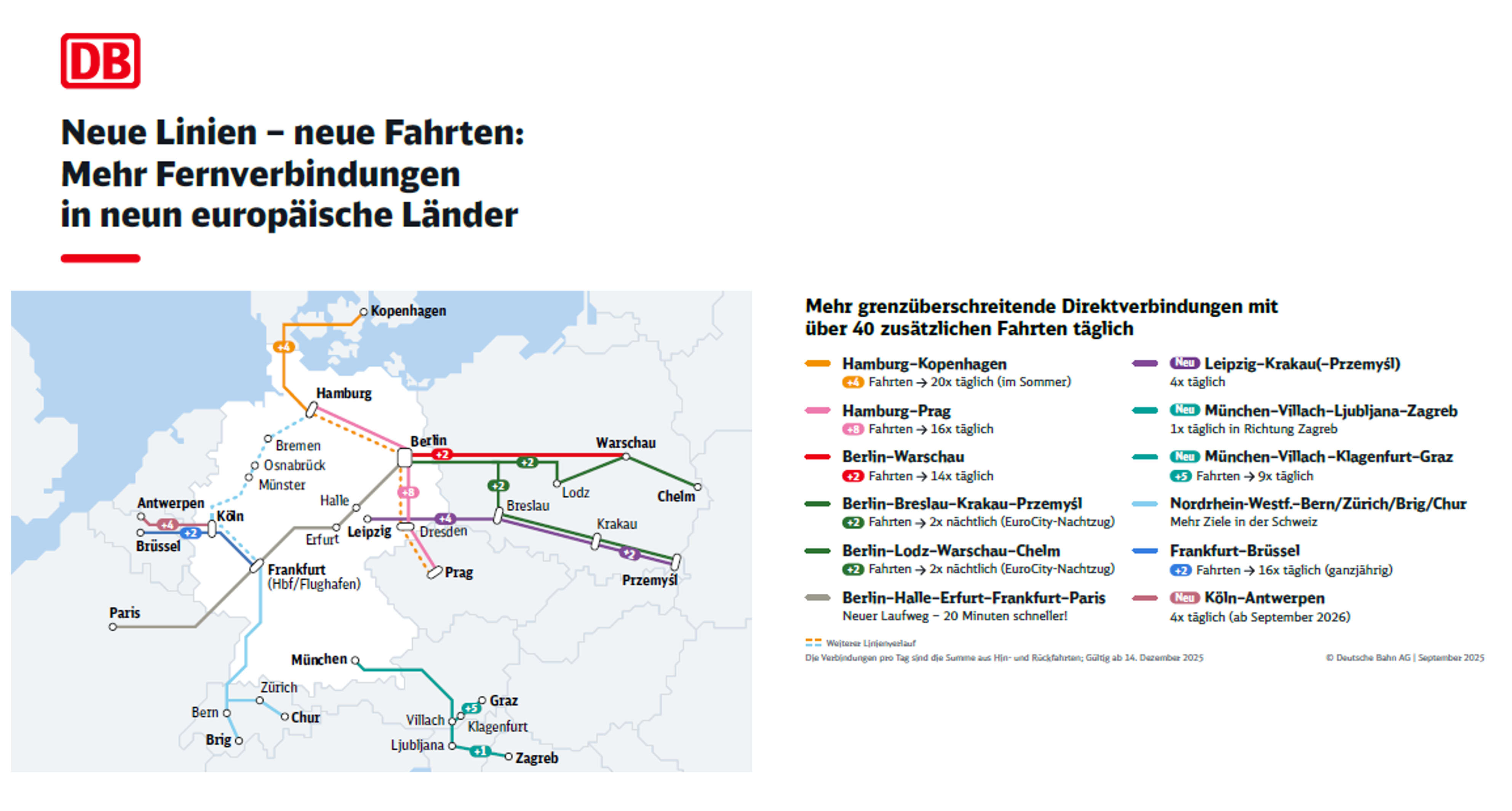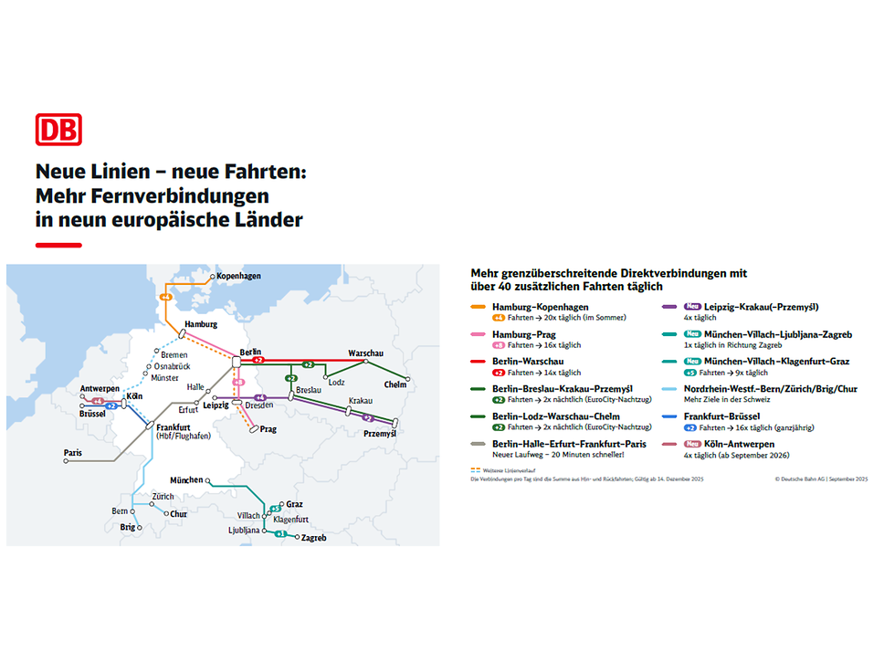 - Weniger Clicks, bessere Transparenz und schnellere Buchung - analog zu innerdeutschen Fahrten