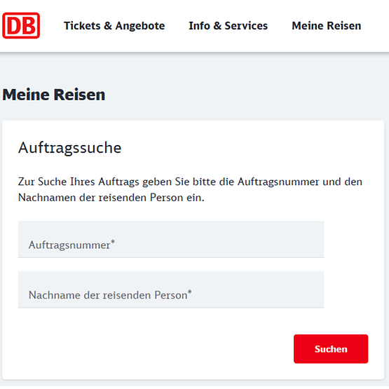 Geschäftskunden können ab sofort alle digitalen Tickets, die über das neue Vertriebssystem gebucht wurden, bequem über die „Auftragssuche“ im Bereich „Meine Reisen“ einreichen. Hierzu geben Sie auf bahn.de unter „Meine Reisen“ einfach die Auftragsnummer und den Nachnamen des Reisenden ein – ein Login ist nicht erforderlich.