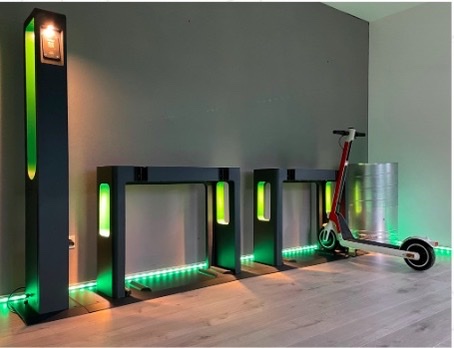 Für diese Zwecke haben wir eine Dockstation entwickelt, welche die E-Scooter lädt, ausliest und verriegelt. Damit stellen wir sicher, dass in unseren Städten keine E-Scooter auf Bürgersteigen und Plätzen herumliegen und diese jederzeit fahrbereit sind.