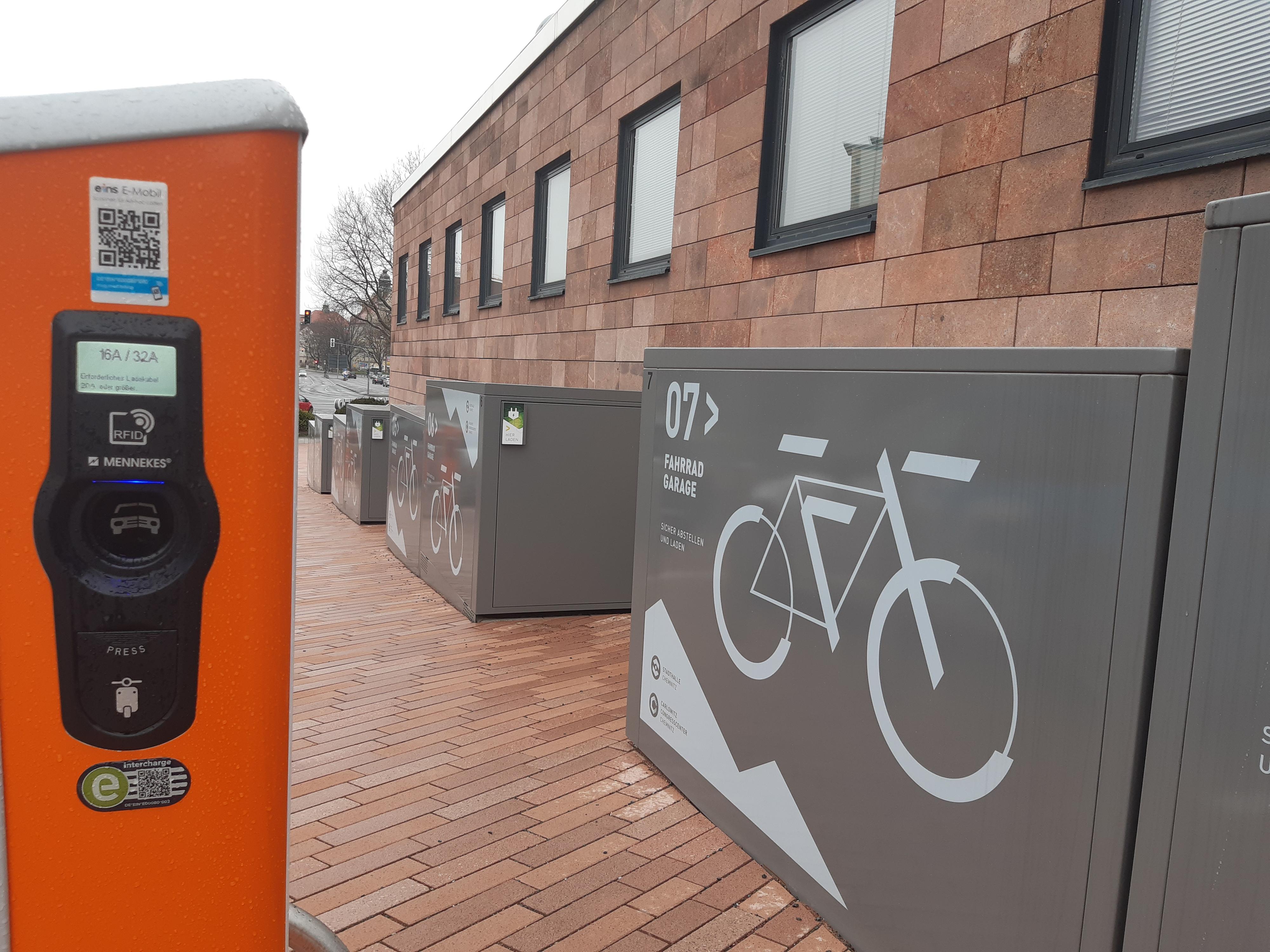 3. Förderung der Fahrradmobilität: Es befinden sich 8 Fahrradboxen mit insgesamt 16 Stellplätzen auf dem Vorplatz des Carlowitz Congresscenters zum sicheren Abstellen von Fahrrädern sowie Laden von E-Fahrrädern.