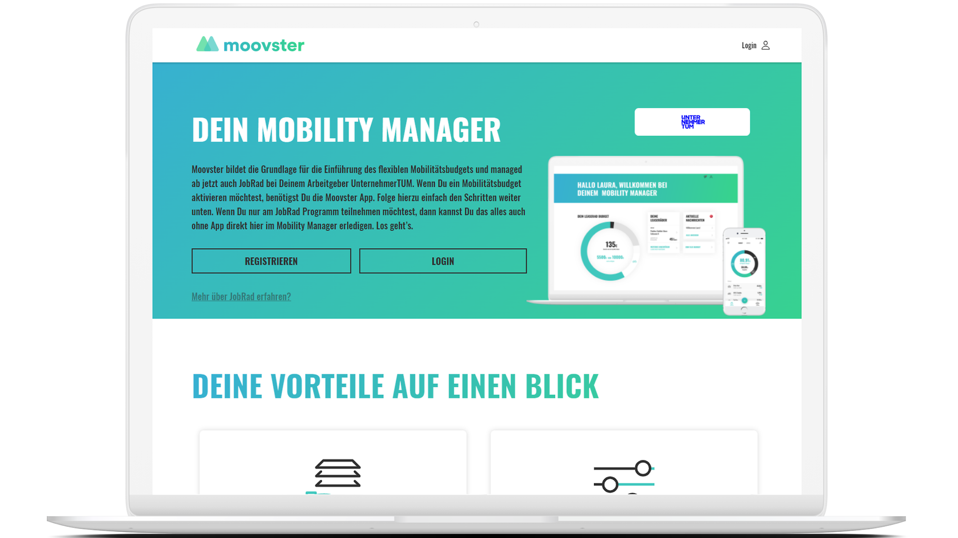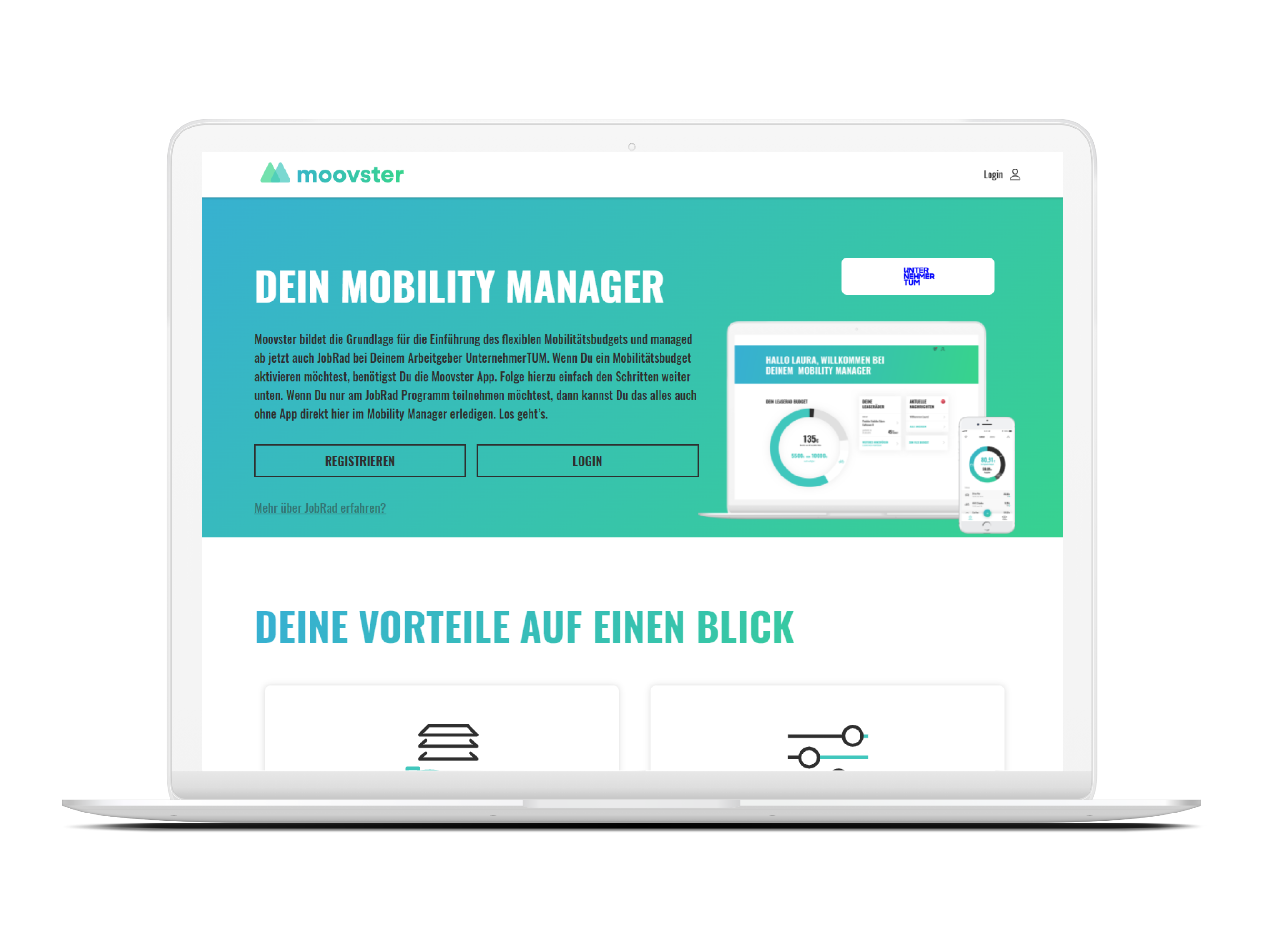 Unser Konzept konnten wir für UnternehmerTUM gemeinsam mit der Mobilitätsbudget- und JobRad-Management-Lösung von Moovster einfach realisieren.