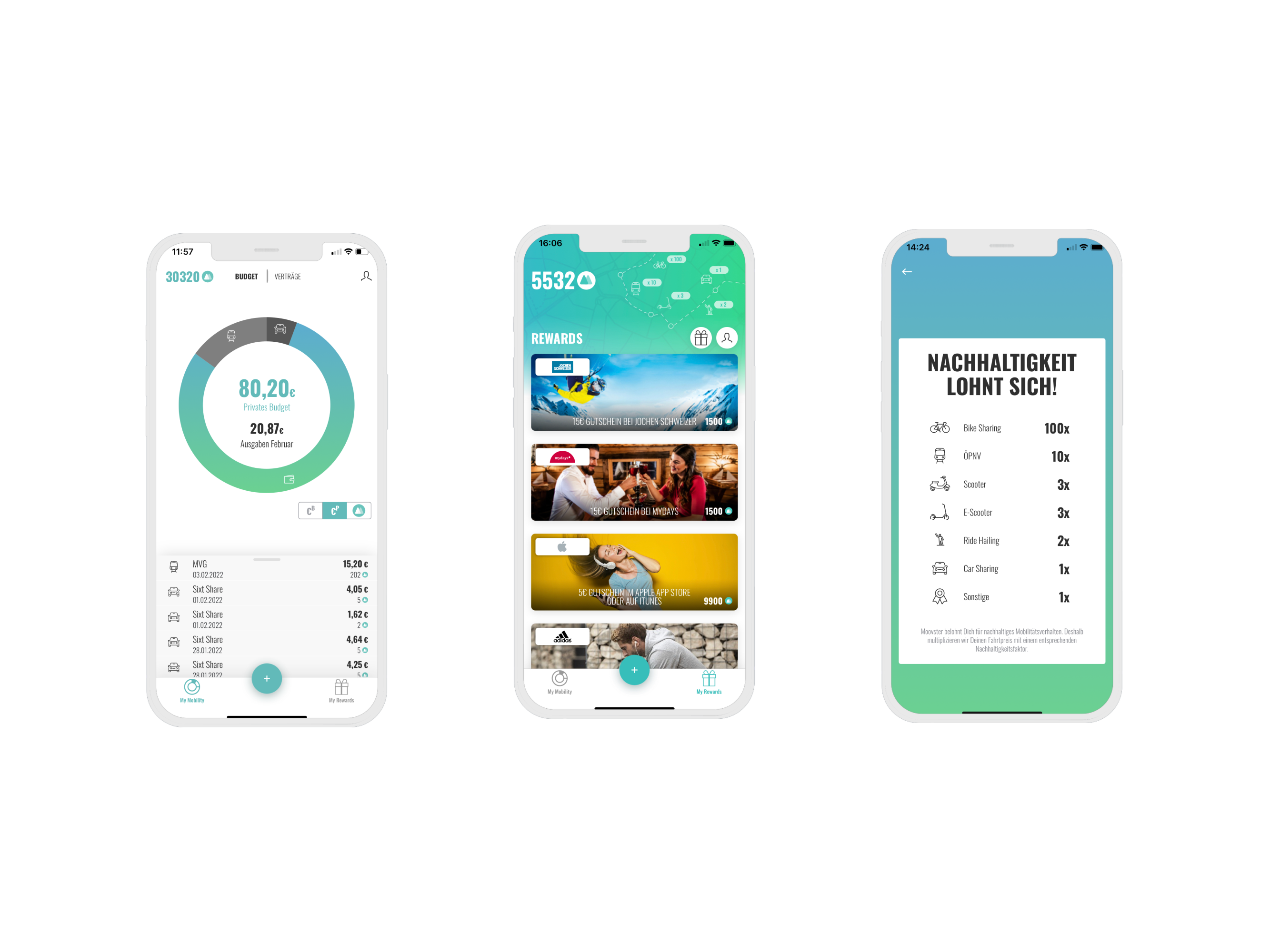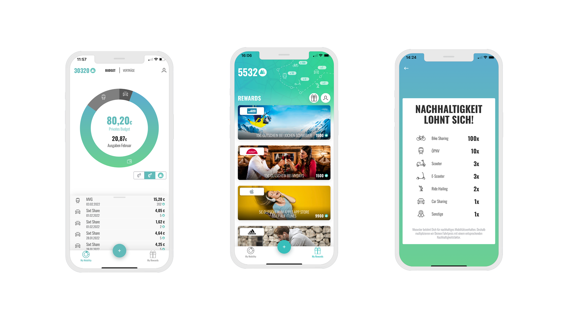 Nachhaltige Mobilitäsentscheidungen sollen sich für unsere Mitarbeitenden lohnen. Ein Vorteil ist bereits der Steuervorteil, der bei ÖPNV Nutzung aus dem Mobilitätsbudget für die Mitarbeitenden entsteht. Ein andere Vorteil ist, dass die Mitarbeitenden für jede Mobilitätsentscheidung Moovster Coins sammeln. Für einen Fahrradnutzung gibt es entsprechend mehr Coins als im Vergleich zur Carsharing Nutzung, um nachhaltiges Verhalten zu belohnen. Diese Coins können dann von den Mitarbeitenden bei den Brandpartnern auf der Moovster Plattform für exklusive Vorteile eingetauscht werden.