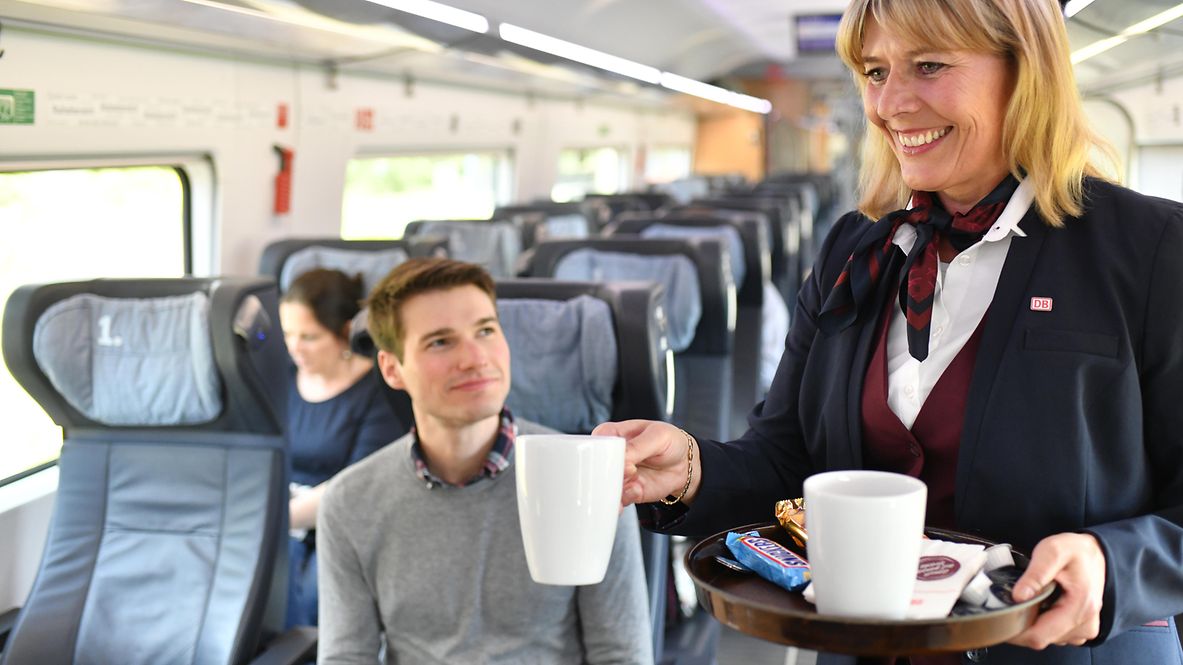 Kostenfreies und unlimitiertes WLAN macht nicht nur das Arbeiten komfortabler. Im ICE-Portal lässt es sich in einer großen Auswahl von Zeitungen stöbern oder auch Podcasts, Serien und Filme entdecken, wenn die Arbeit mal eine Pause braucht. Einmal eingeloggt, kann man auch direkt aus der Speisekarte des Bordbistros wählen und bestellen. Ob Frühstück, ein Snack zwischendurch oder eine warme Mahlzeit – das Angebot des Bordbistros wird Ihnen gern direkt an Ihrem Platz serviert.