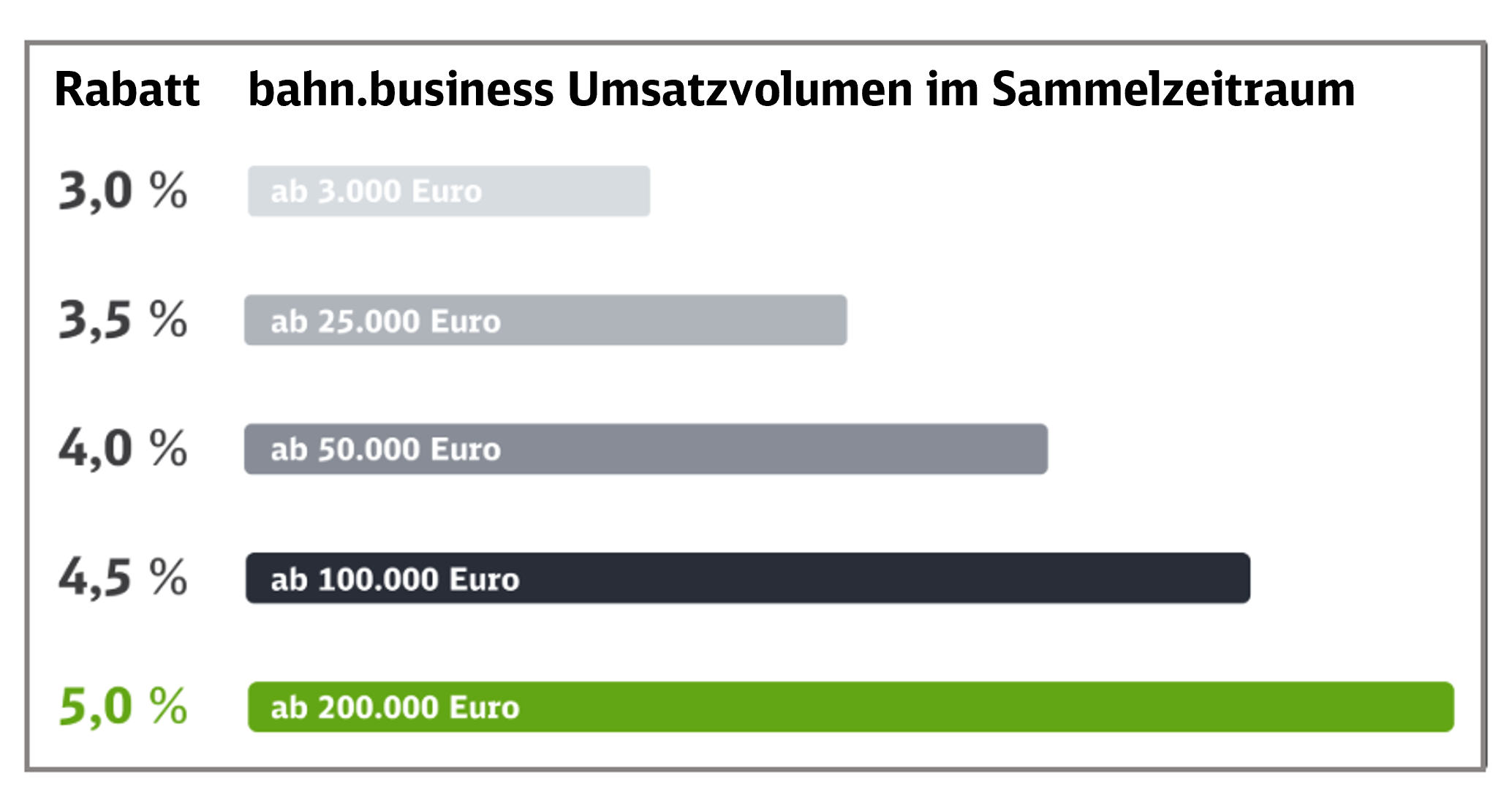 Geschäftsreisen mit der Bahn sind produktiv und nachhaltig. bahn.business ist das kostenlose Geschäftskundenprogramm der Deutschen Bahn, das Unternehmen eine einfache und effiziente Organisation von nachhaltigen Geschäftsreisen mit der Bahn ermöglicht. Hier finden Sie einen Überblick über die Services & Angebote von bahn.business.